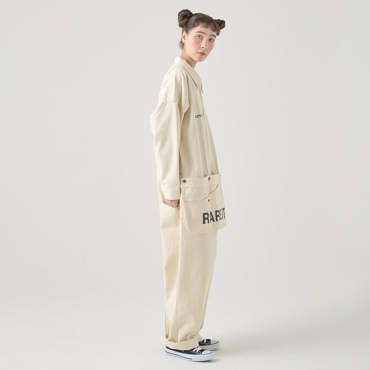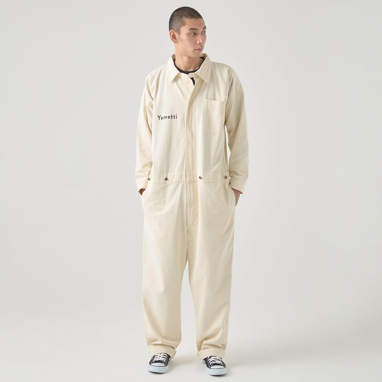 ビッグシルエットで着こなしの美しいラインが特徴的なブランドこだわりの長袖ツナギ。パンツはテーパードタイプでより洗練されたシルエットに。