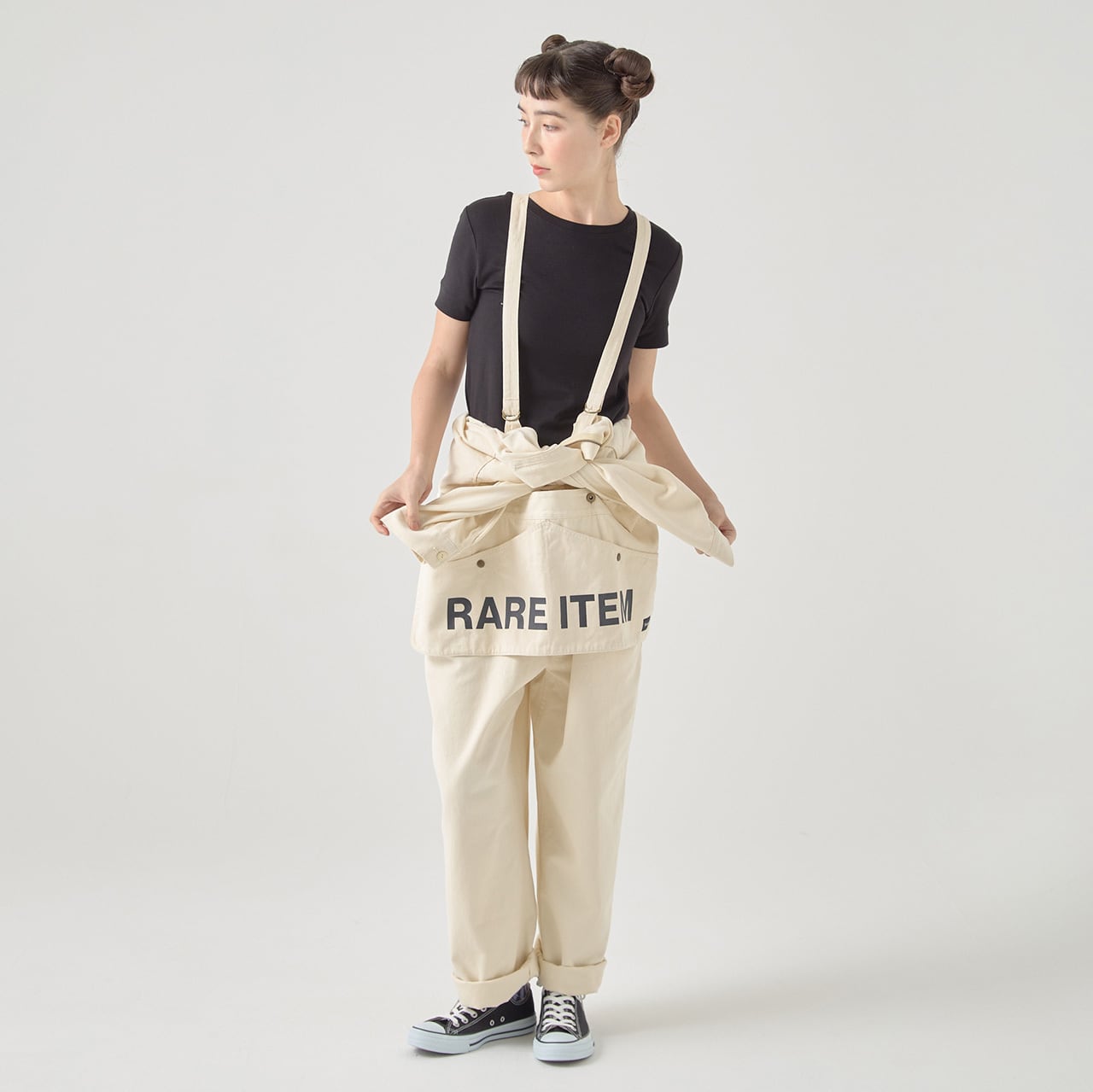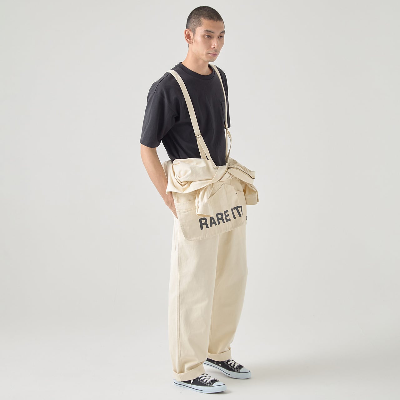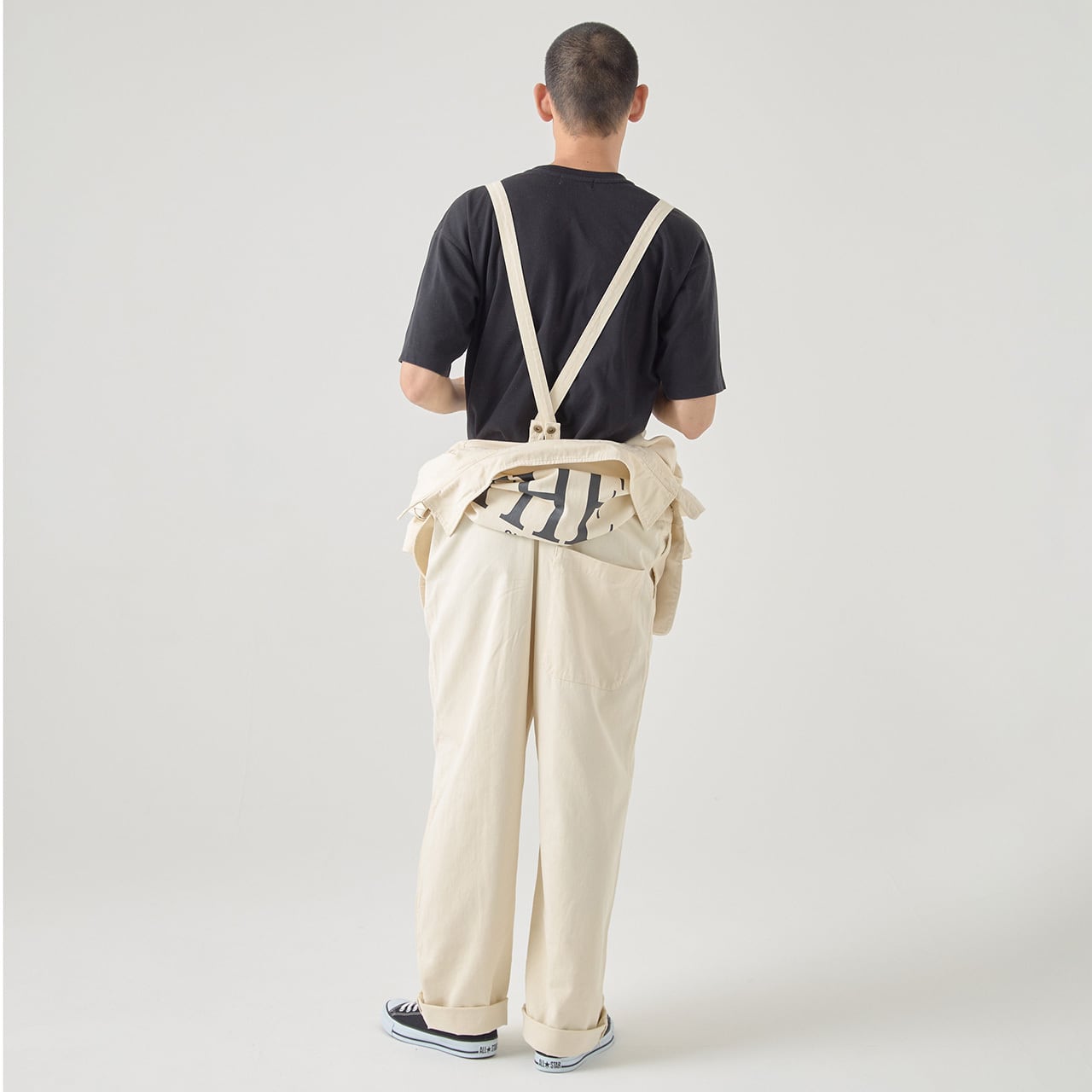 細部まで作りこまれたツナギは、作業着としてはもちろん、普段着としてファッション感覚で着用いただけます。サスペンダー付きなので、作業などで暑くなった時も袖を腰に巻いたスタイリングがきめやすく、機能的でもあり天候に合わせて着こなせます。