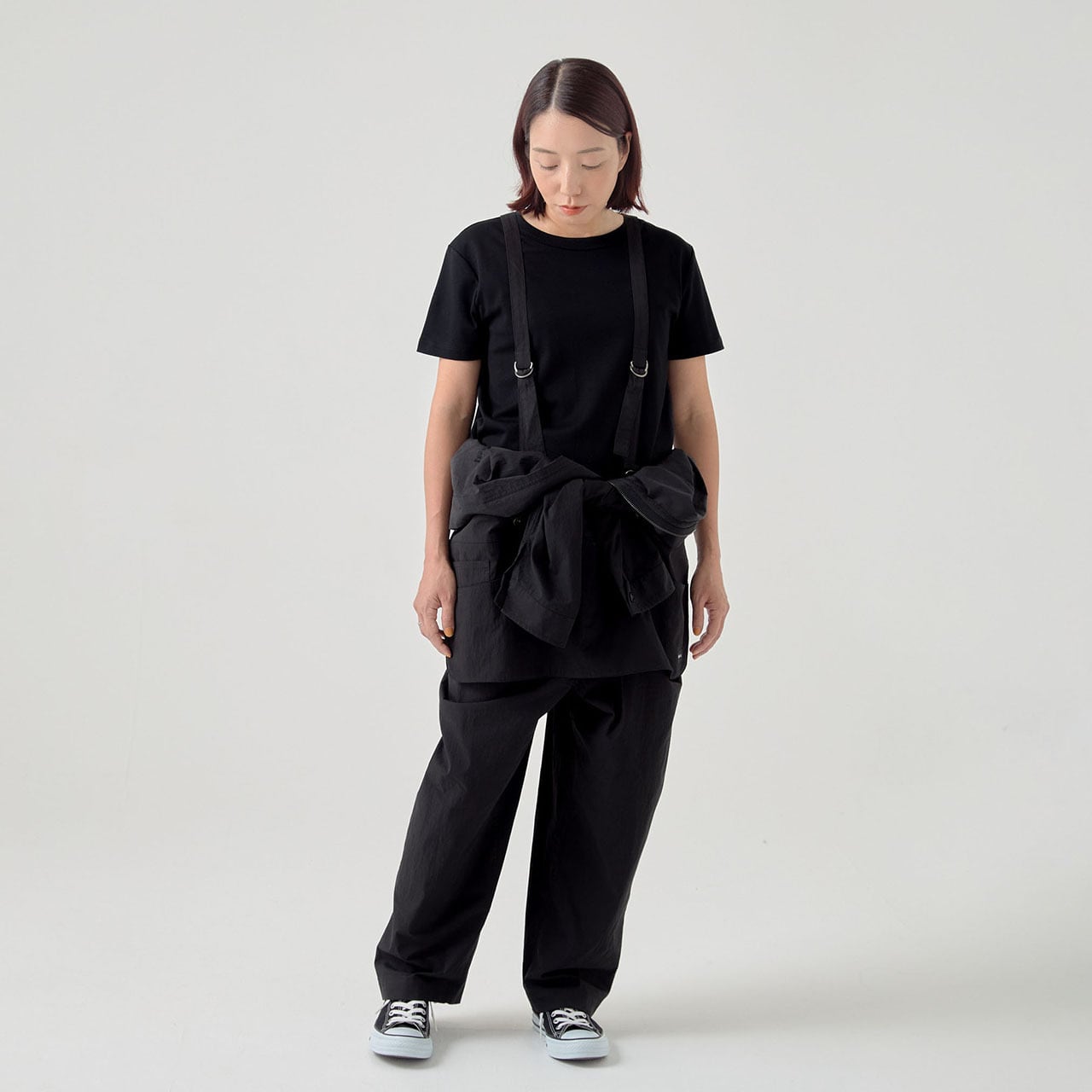 ・腰巻きでの着用時に便利な同色のサスペンダー付きで、スタイリングの幅がさらに拡がるアイテムになっています。