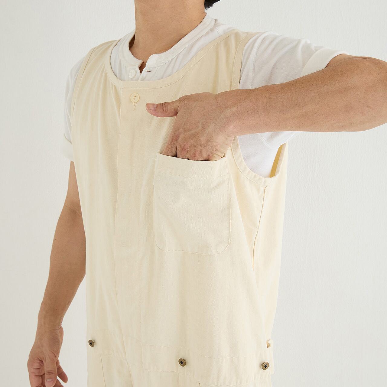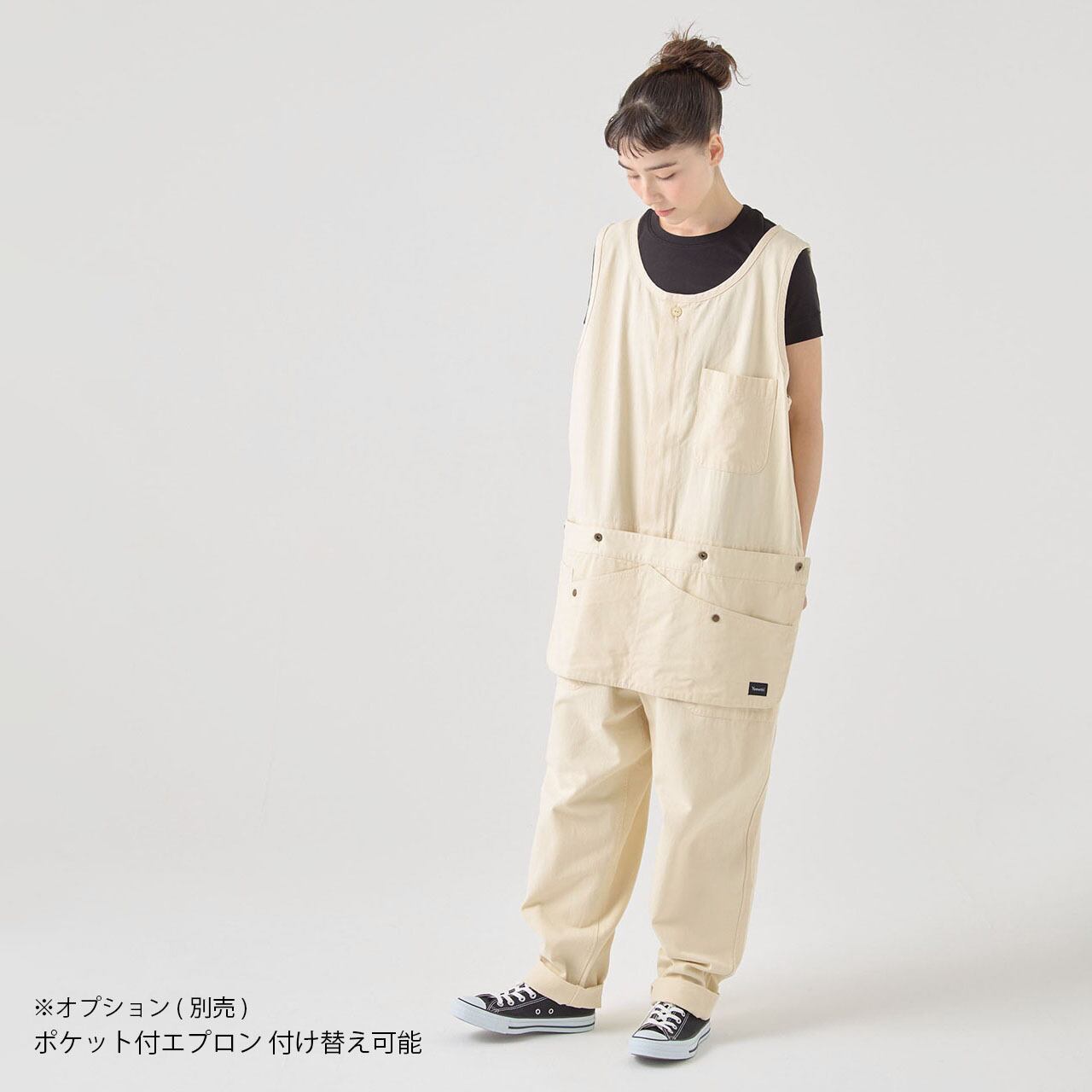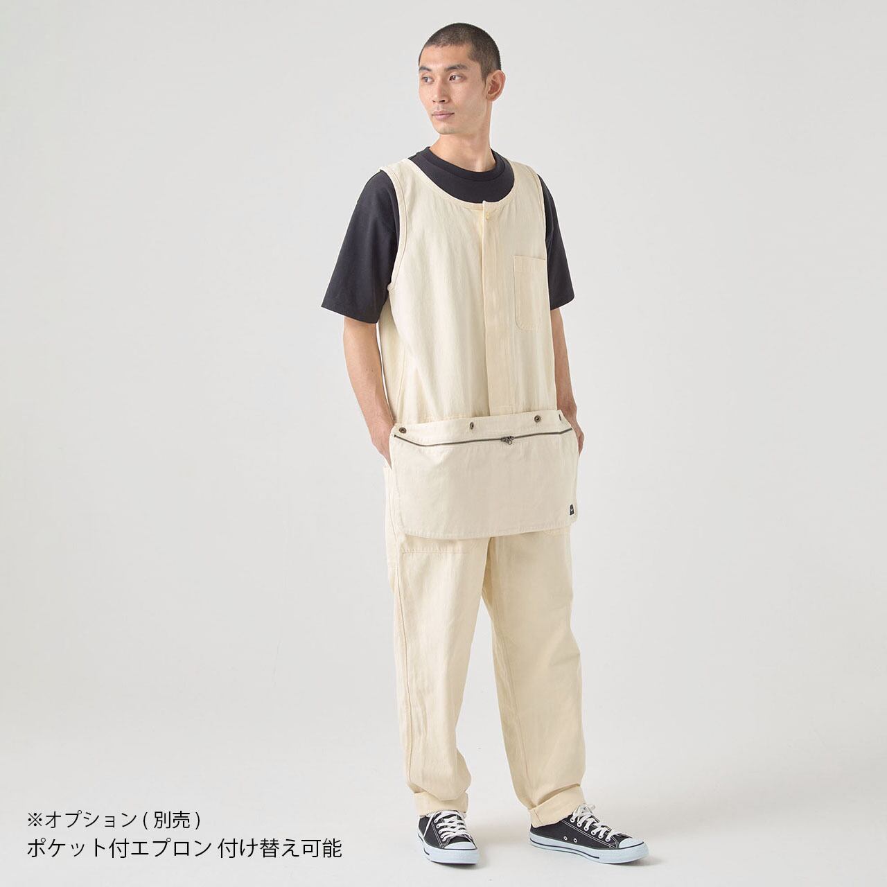 エプロンは「ファスナーポケットタイプ」と「ポケットタイプ」の2種類。シンプルなツナギのアクセントとしてもおすすめです。